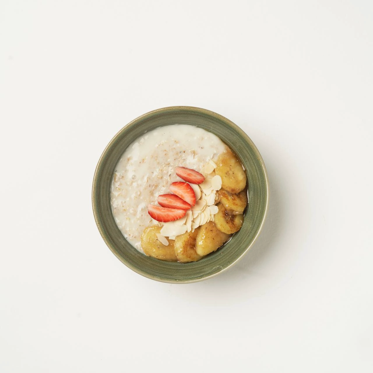 Овсянка, обогащенная растворимыми волокнами, благоприятно влияет на здоровье сердца и регулирование пищеварения. Кокосовые лепестки обогащают блюдо полезными жирами и антиоксидантами. Бананы, содержащие калий, витамины C и B6, придают натуральную сладость,а клубника богатая антиоксидантами и витамином C, поднимает уровень питательности, обеспечивая организм необходимыми витаминами и микроэлементами.
