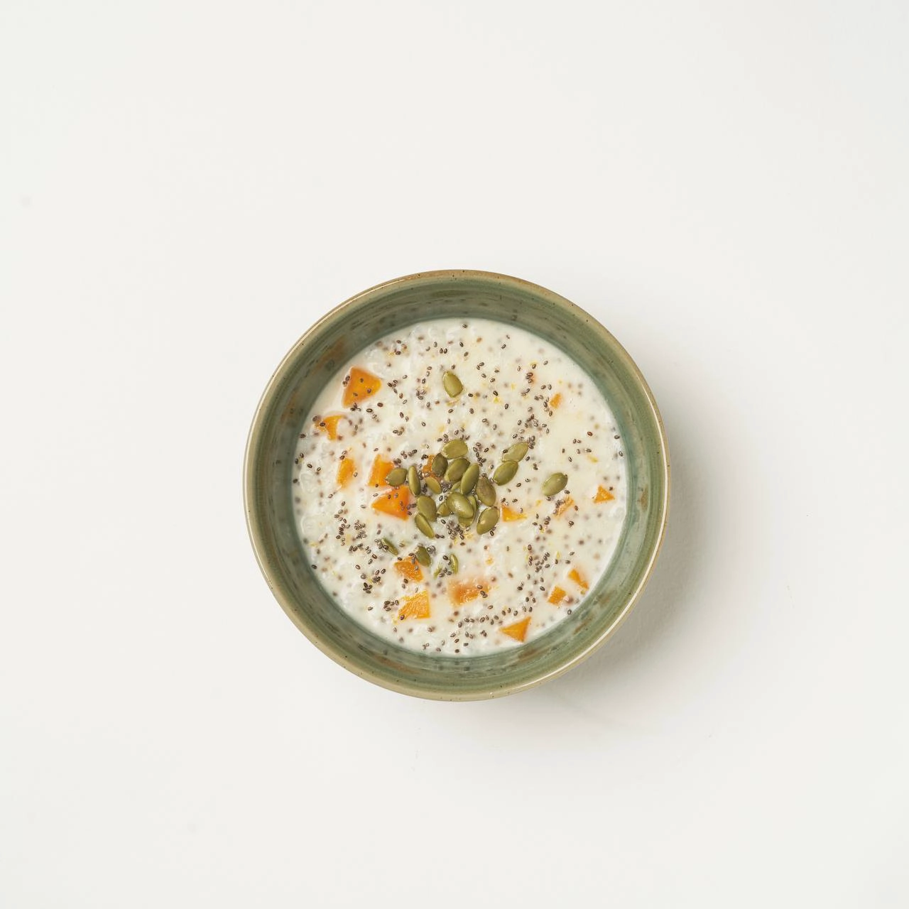 Рис — источник углеводов и энергии, а тыква предоставляет витамины, минералы, антиоксиданты и клетчатку.Семена тыквы богаты ценными микроэлементами, такими как цинк и магний, а также обеспечивают организм здоровыми жирами и белком. Семена чиа содержат омега 3,ктетчатку и антиоксиданты ,которые помогает снизить уровень холестерина, что благотворно сказывается на проницаемости сосудов. За счет улучшения кровообращения снижается нагрузка на сердце, уменьшается риск инфаркта.