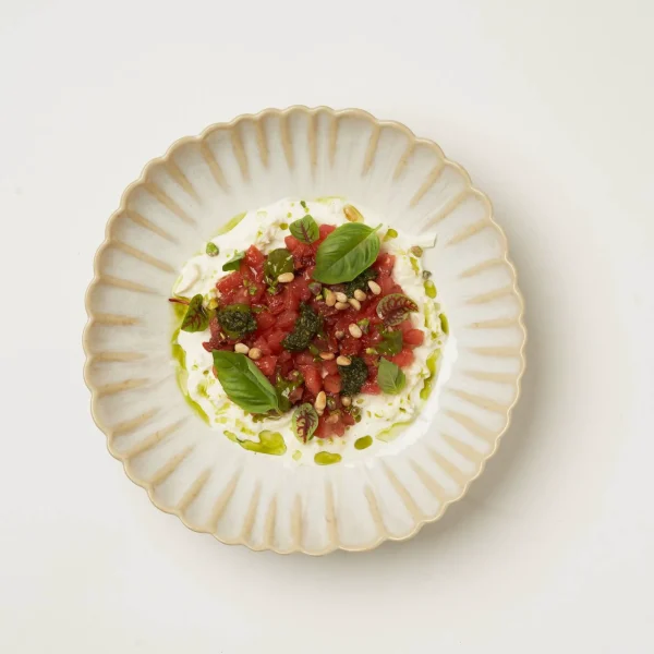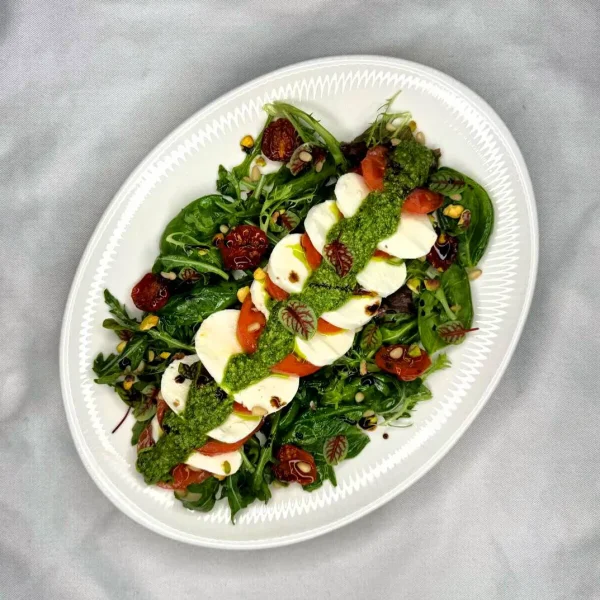 Капрезе с соусом песто со свежими листьями шпината