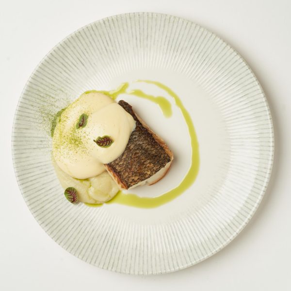 Чилийский сибас с соусом Голландез и пюре из топинамбура