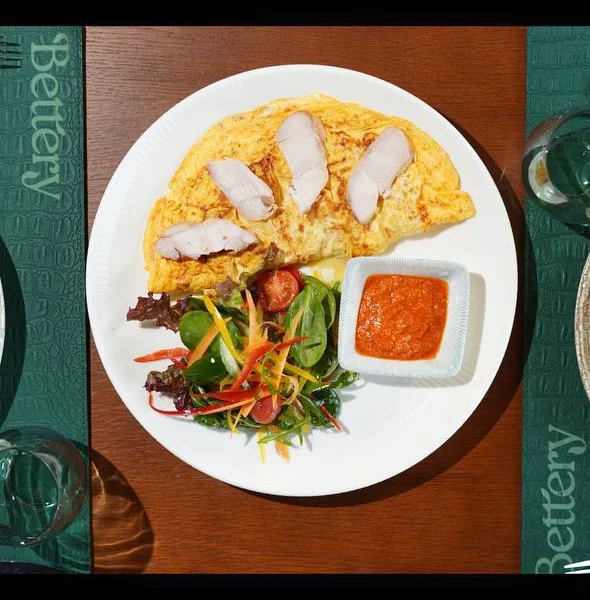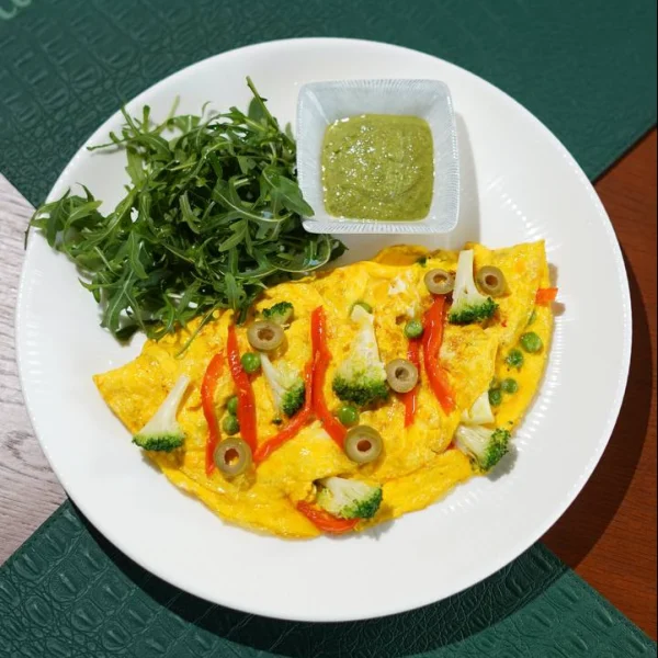 Омлет с запеченным куриным филе